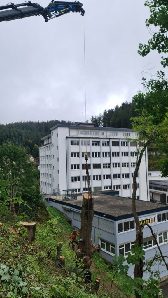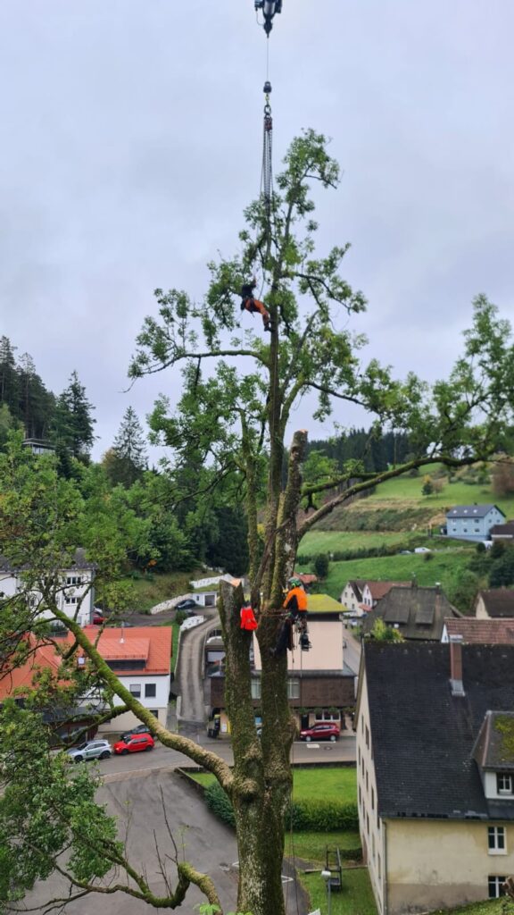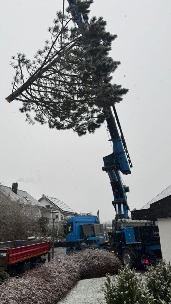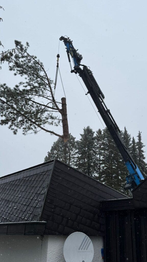 Wir bieten professionelle Baumfällarbeiten für private und gewerbliche Kunden. Neben klassischen Baumfällungen übernehmen wir auch anspruchsvolle Problemfällungen – insbesondere bei beengten Platzverhältnissen oder schwer zugänglichen Bäumen. Mithilfe einer Kombination aus Kletterseiltechnik und / oder unserer Kranfahrzeuge ermöglichen wir eine präzise, kontrollierte und sichere Fällung selbst großer und komplexer Bäume.